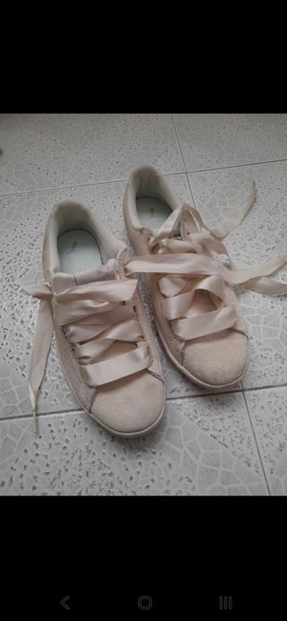 Zapatillas deportivas de ante con cordones de satén. - Diseño moderno y femenino. - Suela cómoda para el día a día. - Detalle de cordones anchos de tela satinada.