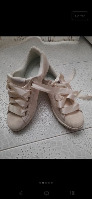 Bonitas zapatillas de Zara con un diseño original. - Detalle de lazo grande en la parte delantera. - Color rosa pálido. - Suela cómoda.
