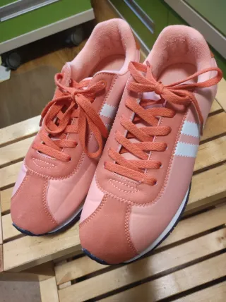 Zapatillas deportivas de estilo casual con un diseño moderno. - Combinación dediferentes tonos de rosas. - Detalles de las icónicas dos franjas blancas. Precio negociable