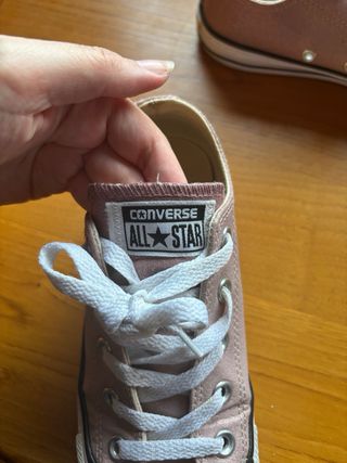 Zapatillas bajas Converse en tono rosa con un sutil brillo. - Cierre con cordones blancos. - Puntera reforzada. - Detalle de logo en la lengüeta.