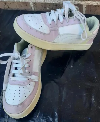 zapatillas blancas con rayas rosas, se q encuentran en buen estado