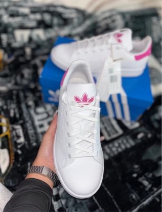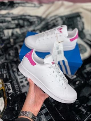 Zapatillas Adidas Stan Smith en talla 37 1/3. Combinan el blanco clásico con detalles en rosa vibrante. nuevas con etiquetas con caja entrega en mano Salamanca. envío express