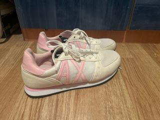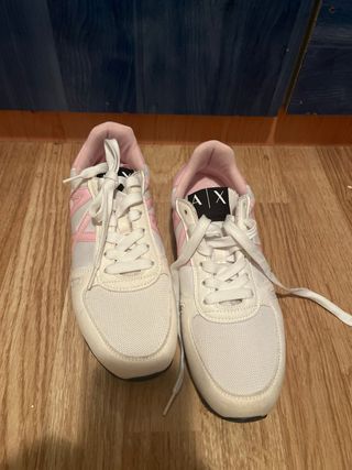 Zapatillas deportivas de la marca Armani Exchange con un diseño moderno y llamativo. - Combinación de colores blanco y rosa. - Detalle de logo en los laterales. - Cierre con cordones.