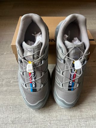 Zapatillas Salomon de estilo deportivo y moderno. Calzan pequeñas más bien son 41. - Combinación de colores beige y gris. - Diseño unisex.