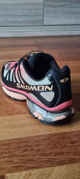 Zapatillas deportivas Salomon XT-4. - Diseño Aurora Borealis. - Combinación de colores negro y rosa. - Se venden por talla pequeña - Se han utilizado dos veces