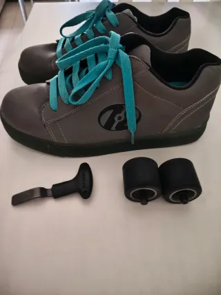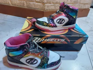 Zapatillas Heelys con ruedas - Combinación de colores llamativos. - Cierre con cordones. - Suela con ruedas extraíbles le falta 1 rueda