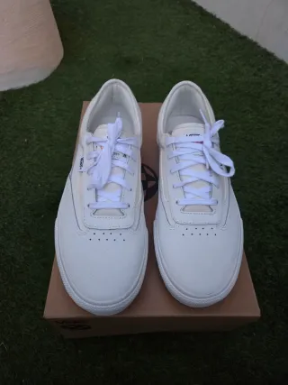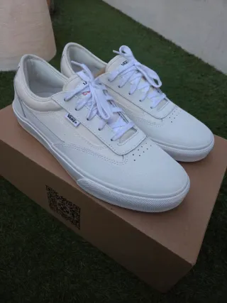 VENDO Sneakers VANS Lowland originales en talla 44,5. Diseño clásico y muy buscado. Color blanco con detalles en rojo, combinan con todo. Perfectas para uso diario, estilo casual o streetwear. 🎁 🎁 🎁 REGALO un par de cordones negros como los que salen en las fotos, que VANS no los incluye. 👟 Estado: Completamente nuevas, a estrenar (ver fotos reales). 📦 Incluye caja original Vans. 💯 100% originales. 👌 Cómodas, ligeras y con materiales de calidad premium (piel y ante). 🚀 Precio competitivo para venta rápida. 📍 Entrega en mano o envío por Wallapop. ❌ No cambios. Si tienes cualquier duda, ¡escríbeme sin compromiso!