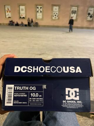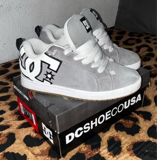 Zapatillas de la marca DC Shoes en color gris y blanco. Perfectas para el día a día. - Cierre con cordones. - Logo de DC en la lengüeta y lateral. talla 43 muy comodas, para vestir y skate, no se ven muy limpias porque no tengo con que limpiar el tipo de piel y no lo queria dañar pero estan en perfecta condiciones, oferta comprensible porfavor