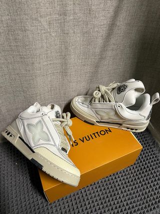 Zapatillas Louis Vuitton estilo skate en tonos grises y blancos. Me lás he puesto dos o tres veces como mucho,recién compradas sin ningún defecto.NEGOCIABLE