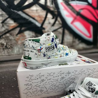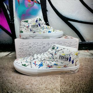Zapatillas de skate de caña alta con un diseño vibrante y llamativo. - Combinación de colores negro y multicolor. - Cierre con cordones negros. - Suela blanca característica de la marca. - Precio negociable. - Solo se han usado 2 veces.