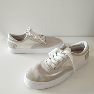Zapatillas Vans modelo Lizzie en color blanco y beige. Talla 41 (US 8.5). - Diseño de caña media. - Cierre con cordones. - Detalle de gamuza en la puntera y talón. - patinadas un día. Están sucias por fuera porque siendo blancas es imposible mantenerlas limpias cinco minutos pero están en perfectas condiciones