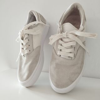 Zapatillas de lona y ante en tonos beige y blanco, talla 39. Tipo Canvas. En buen estado. Recién lavadas y muy pocas marcas de uso, ya que la talla me queda pequeña (es un 39 muy justo) skate