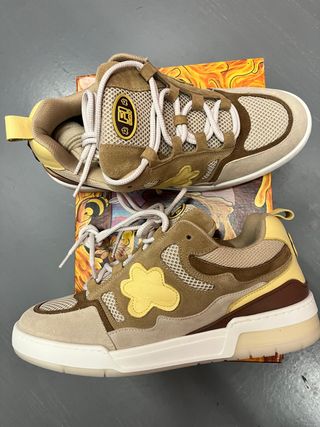 Zapatillas de diseño único con una combinación de colores marrón y amarillo. Colaboracion exclusiva FLOWER INSTINCT x SNEAKMART - Detalle de flor amarilla en el lateral. - Paneles de malla transpirable. - Cordones blancos. - Parche con logo en la lengüeta.
