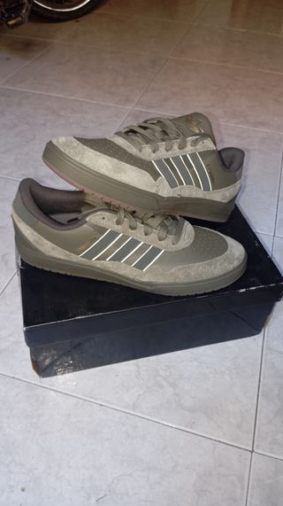 Zapatillas de skate Adidas Tyshawn en color verde oliva. Las he ganado en una competición de skate, no las uso, son nuevas. - Diseño inspirado en el skateboarding. - Detalles de las tres rayas de Adidas. - Materiales de gamuza y cuero.