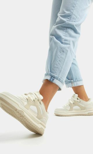 Zapatillas estilo skater color beige y blanco. Colección especial de Lanvin para Bershka Nueva temporada Agotado Viral - Paneles de malla transpirable. - Detalle de perforaciones. - Suela gruesa y robusta.