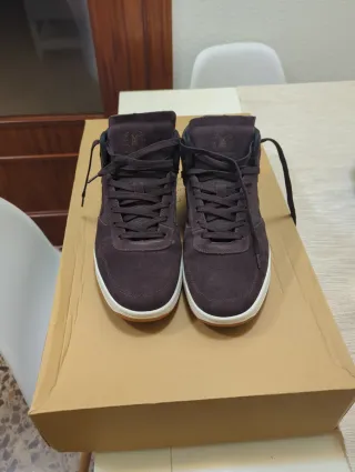 Zapatillas skate, hours is yours, John dilo pro modelo, mid de color marrón. 1 uso. Nuevas, error talla. - Material de ante. - Cierre con cordones. - Suela de goma blanca y marrón.