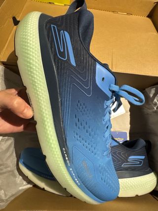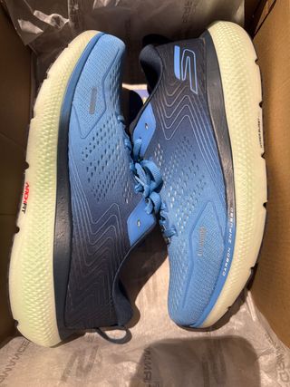 Zapatillas deportivas Skechers en tonos azules, perfectas para running. Modelo GO RUN RIDE 11 - Diseño moderno con detalles en contraste. - Suela con tecnología Hyper Burst. - Incorporan sistema Arch Fit para mayor soporte. - Tejido transpirable.