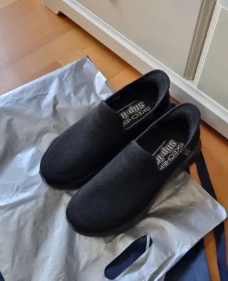 Zapatillas Skechers modelo Slip-ins para hombre. - Color negro. - Diseño sin cordones para poner y quitar fácilmente. Son livianos y muy cómodos!!