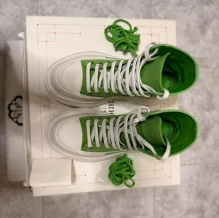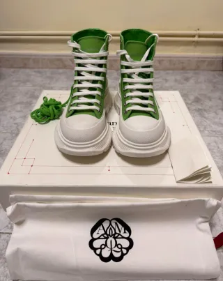 Zapatillas altas de Alexander McQueen en verde y blanco. - Cordones blancos. - Suela blanca gruesa. - Detalle de color verde en el interior y exterior.
