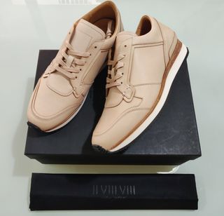 NUMBER 288 - Sneakers premium hechas a mano en Portugal, parte superior en cuero de curtición vegetal que desarrollará una pátina única con el tiempo, seis ojales y cordones en algodón encerado a tono, forro de piel de becerro y plantilla de cuero extraíble, media suela blanca con detalle de ribete de cuero y suela de goma negra antideslizante Modelo: Bleeker - PVP: 350€ Talla: UK 8 / US 9/ EU 42 (Tallaje real) Largo plantilla: 27,5 cm Estado: Nuevo con caja y bolsa para el polvo, hay algunas pequeñas marcas / suciedad.
