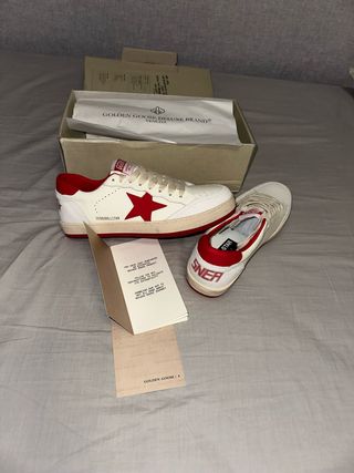 Zapatillas nuevas Golden Goose Ballstar en blanco y rojo. Un clásico de la marca. Talla 44 - Diseño icónico con estrella roja. - Cierre de cordones. - Detalle de logo en la lengüeta y el talón.