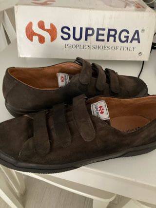 Zapatillas de la marca Superga en color marrón. - Cierre de velcro. - Detalle de logo en la lengüeta. - Ante marrón - casi nuevas