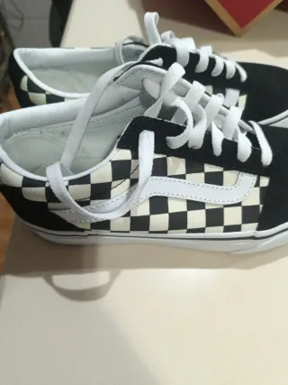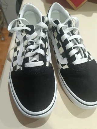 Tenis de la marca Vans con un diseño clásico de cuadros, están nuevos en su caja - Patrón de cuadros en blanco y negro. - Detalle de franja lateral. - Puntera reforzada.