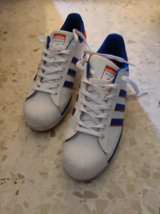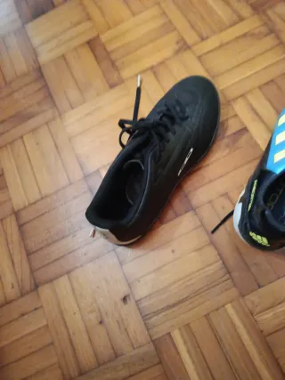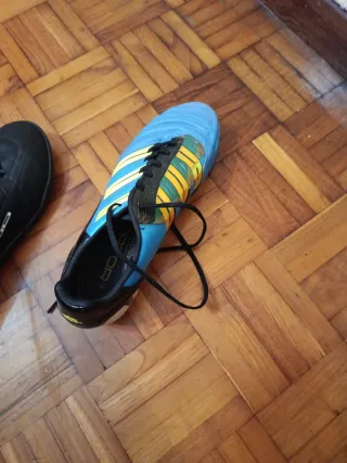 Zapatillas de fútbol con tacos. - Diseño en azul y amarillo. - Marca Adidas. Unas de tacos y otras multitacis las dos 20 euros