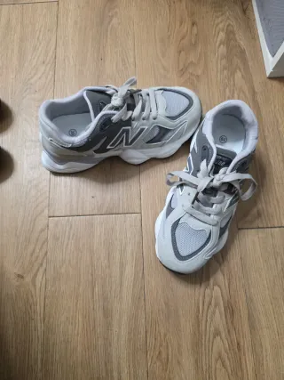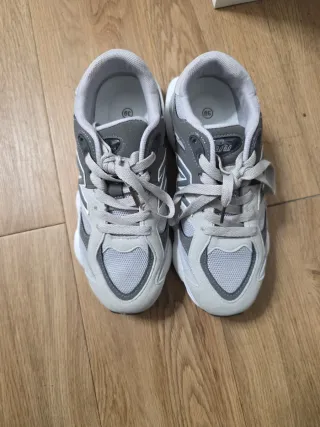 Zapatillas deportivas de estilo New Balance en tonos grises y blancos. - Diseño moderno y cómodo. - Detalle de logo en la plantilla. - Cordones a juego.