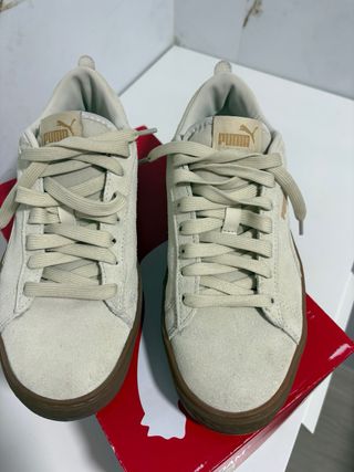 Zapatillas Puma Smash Platform SD con suela gruesa. - Exterior de ante. - Suela de goma marrón. - Cordones a tono.