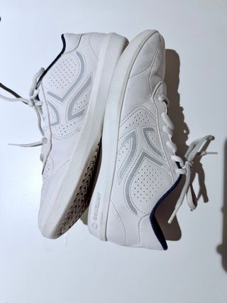 Zapatillas deportivas de la marca Artengo de Decatlhon. Unisex. Talla 39. - Diseño moderno color blanco con detalles en gris. - Cierre de cordones. - Suela de goma.
