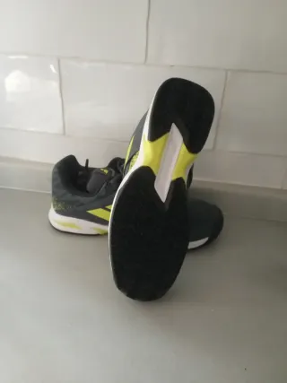 Zapatillas de tenis Babolat en perfecto estado, listas para la acción en la pista. - Diseño en color negro con detalles en amarillo. - Talla 39.