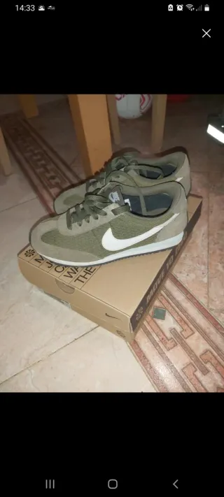 Zapatillas deportivas Nike con un diseño moderno y cómodo. - Combinación de colores beige y verde. - Logo de Nike en el lateral.