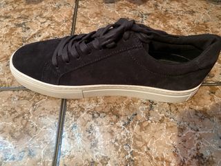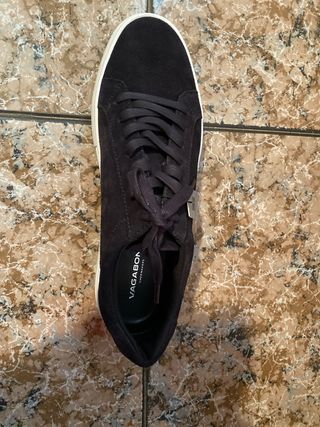 Par de tenis Vagabond en perfecto estado. - Diseño moderno y versátil. - Material de gamuza. - Suela blanca. - Cordones negros. P.D.: Los tenis indican que son una talla 43 pero los probé en mi pié y como mínimo tienes que usar una talla 44 sino no te van a servir.