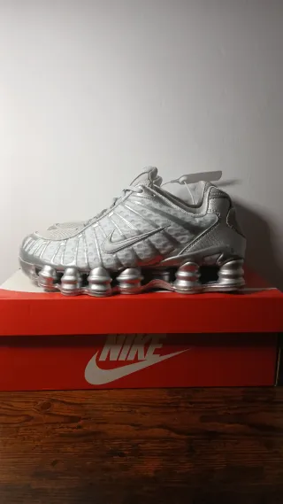 Zapatillas deportivas Nike Shox con un diseño llamativo y moderno. - Color plateado brillante. - Suela con tecnología Shox. - Detalle de Swoosh en el lateral.