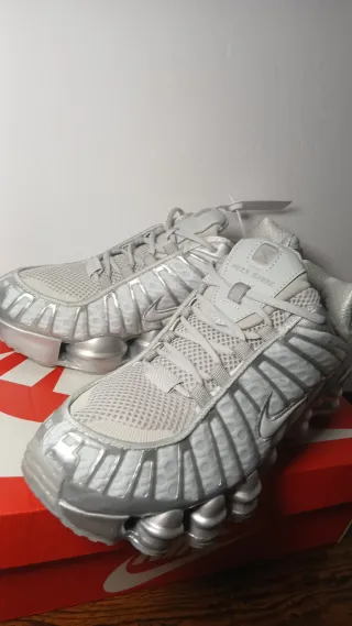 Zapatillas deportivas Nike en color plateado. - Diseño moderno y llamativo. - Suela con tecnología Shox. - Cierre de cordones.