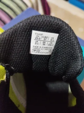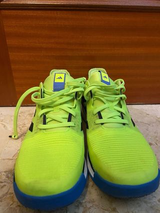 Zapatillas de pádel Adidas en buen estado. - Color verde lima con detalles en negro. - Suela de goma azul. - Cierre con cordones.