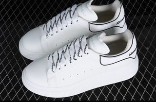Tenis Alexander McQueen en color blanco, completamente nuevos. - Diseño moderno y elegante. - Cordones con detalle de rayas negras y blancas. - Logo de la marca en la lengüeta y el talón.