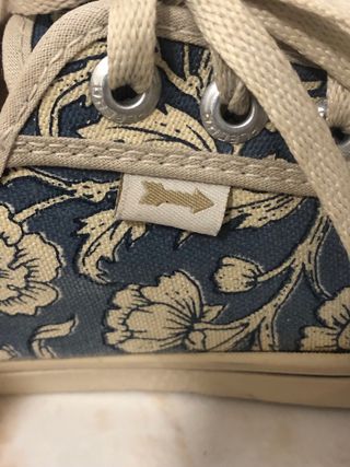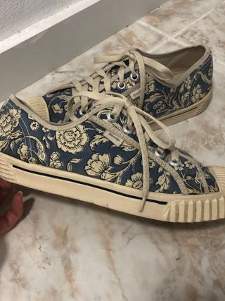 Tenis de la marca Fletcha con un diseño floral único en tonos azul y beige. Marca Argentina, estilo retro, compradas en Buenos Aires. - Estampado floral detallado. - Cordones de color beige. - Suela de goma. - Diseño de corte bajo. Estilo VANS