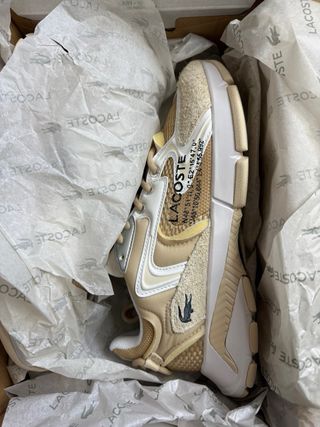 Tenis de estilo casual y deportivo. - Diseño moderno en tonos beige y gris. - Logo de la marca en el lateral. - Cordones para un ajuste seguro.