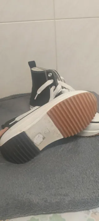 Zapatillas altas Converse con suela de plataforma. - Diseño clásico en negro y blanco. - Cordones blancos. - Detalle de estrella en el lateral.
