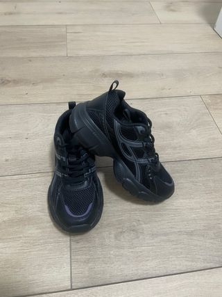 Zapatillas deportivas de color negro con un diseño moderno y detalles en malla. - Suela gruesa y robusta. - Cierre con cordones. - Detalle de color en la puntera.