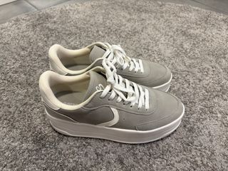 Zapatillas deportivas de plataforma de Bershka, en color gris. Ideales para un look casual y cómodo. - Suela de plataforma gruesa. - Diseño sencillo y elegante. - Material de ante. - Solo 2 usos.
