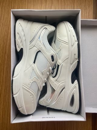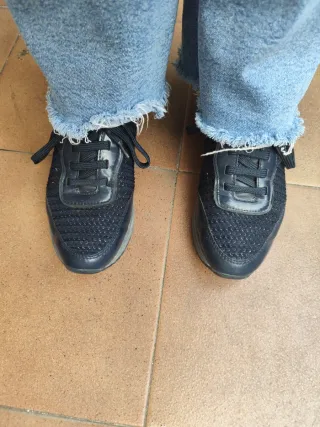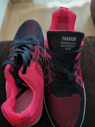 Zapatillas deportivas para mujer con un diseño moderno y llamativo. - Parte superior de malla transpirable. - Cordones negros. - Detalle de logo en la lengüeta. - Con cámara de aire , muy comodos - Talla de largo 30cm