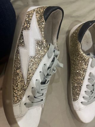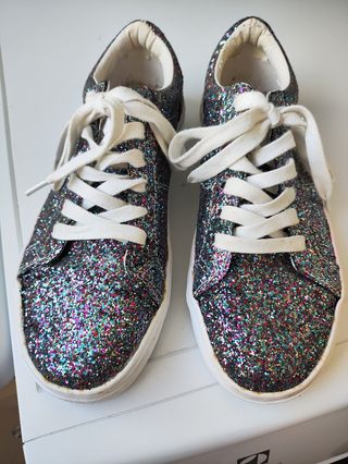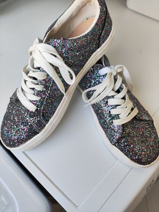 Zapatillas deportivas de Pull Bear, con un diseño brillante y multicolor. Ideales para añadir un toque de brillo a cualquier look. - Son dos pares de zapatillas. - Están en buen estado, con algunos signos normales de uso. Aunque es un n° 38 talla pequeño.