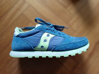 Zapatillas deportivas Saucony en tonos azules y verdes. - Diseño deportivo. - Combinación de materiales. En buen estado.