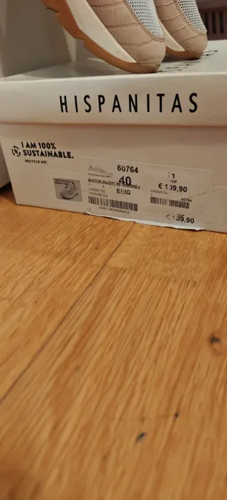 Zapatillas deportivas Hispanitas en tonos beige y blanco. Perfectas para un look casual y cómodo. - Diseño moderno con detalles en malla. - Cierre de cordones. - Suela de goma.