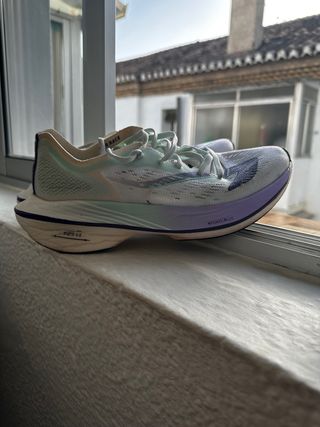 zapatillas de running de mujer con solo 35km, no tienen ni un año y solo han sido usadas en pista de atletismo. Zapatilla con placa de carbono. Muy ligera con 167gr en talla 37. Precio negociable!