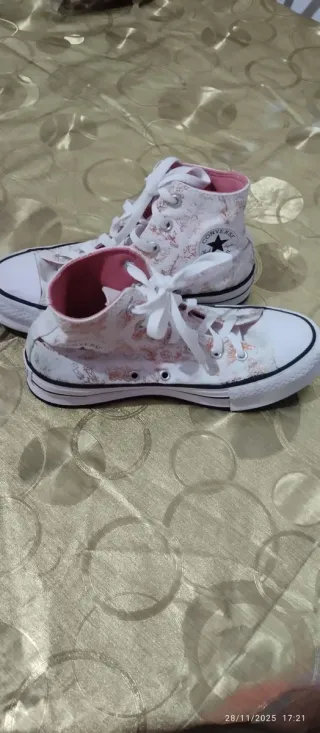 Zapatillas Converse originales con un bonito estampado floral. - Diseño alto. - Cordones blancos. - Detalle interior rosa.