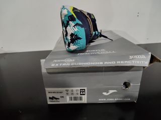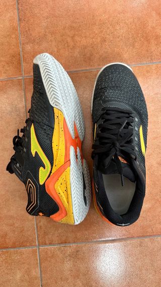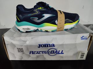 Zapatillas deportivas Joma para pádel o tenis. - Diseño multicolor sobre base blanca. - Talla 41. - Suela con tecnología Reactiveball. - Sistema Flex Shield para mayor estabilidad.